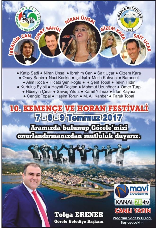 Görele Belediyesi tarafından her yıl geleneksel olarak düzenlenen Görele Kemençe ve Horan Festivali bu yıl 7-8-9 Temmuz tarihinde yapılacak.